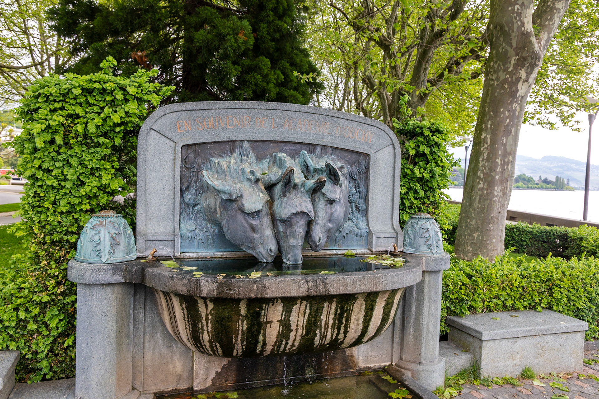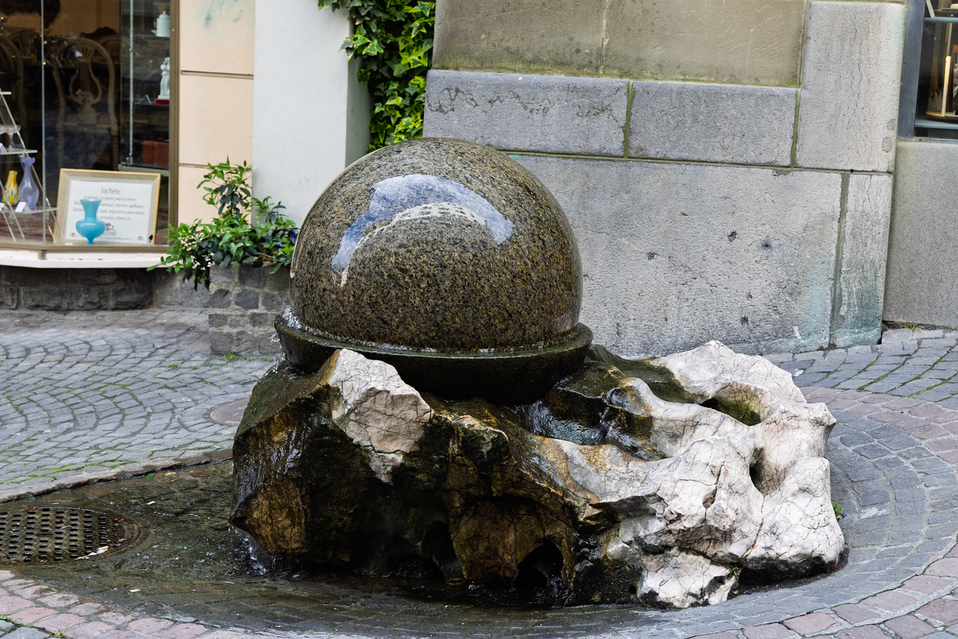 The statue atop the fountain is a symbolic portrayal of Lady Justice:Blindfolded, for impartialityHolding a sword in her right hand, symbolizing authorityHolding a balance scale in her left, symbolizing fairnessWith one knee exposed, symbolizing mercy.. Figures representing the Pope, Emperor, Grand Turk, and a magistrate are tucked under her robes, signifying their subjugation to justice