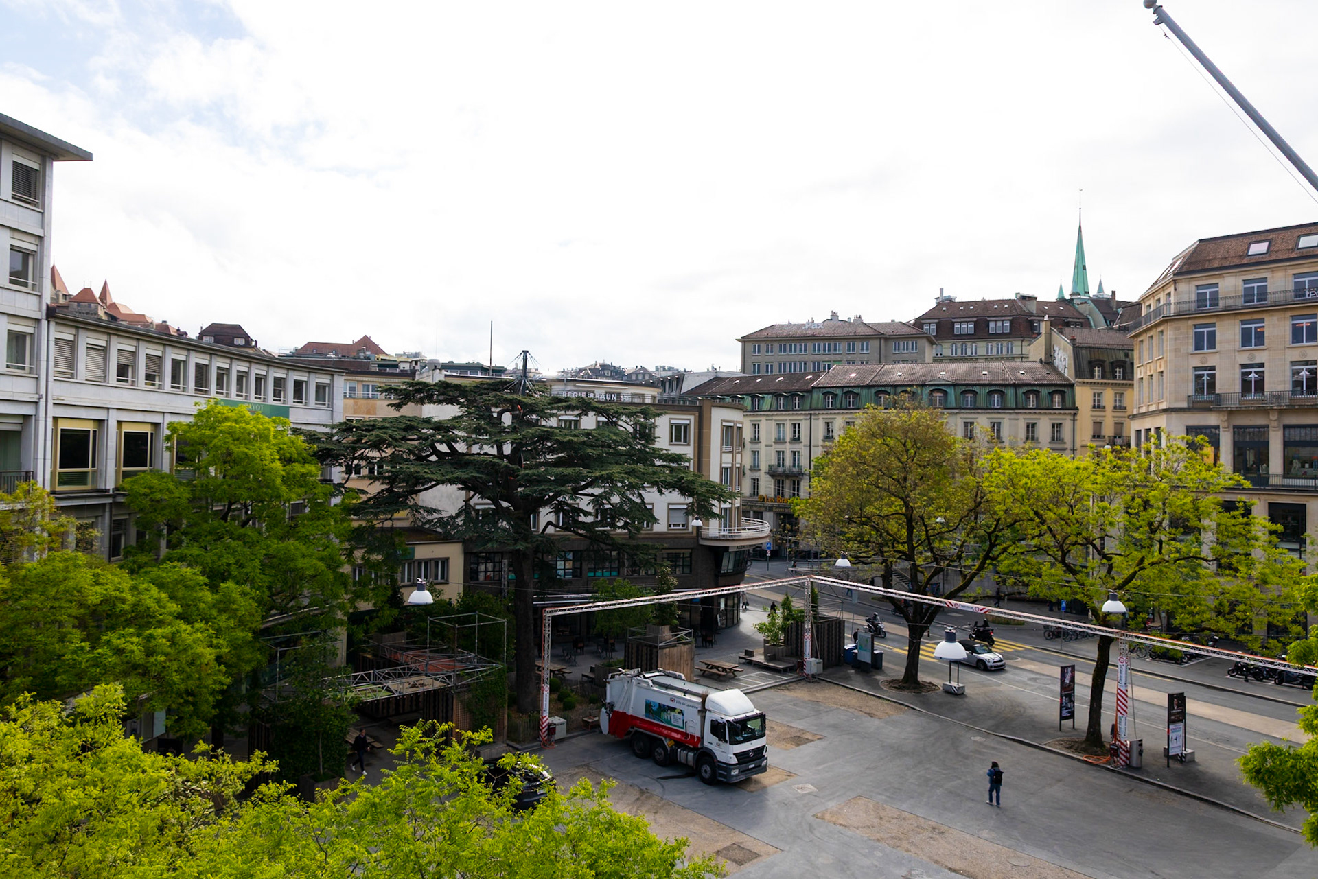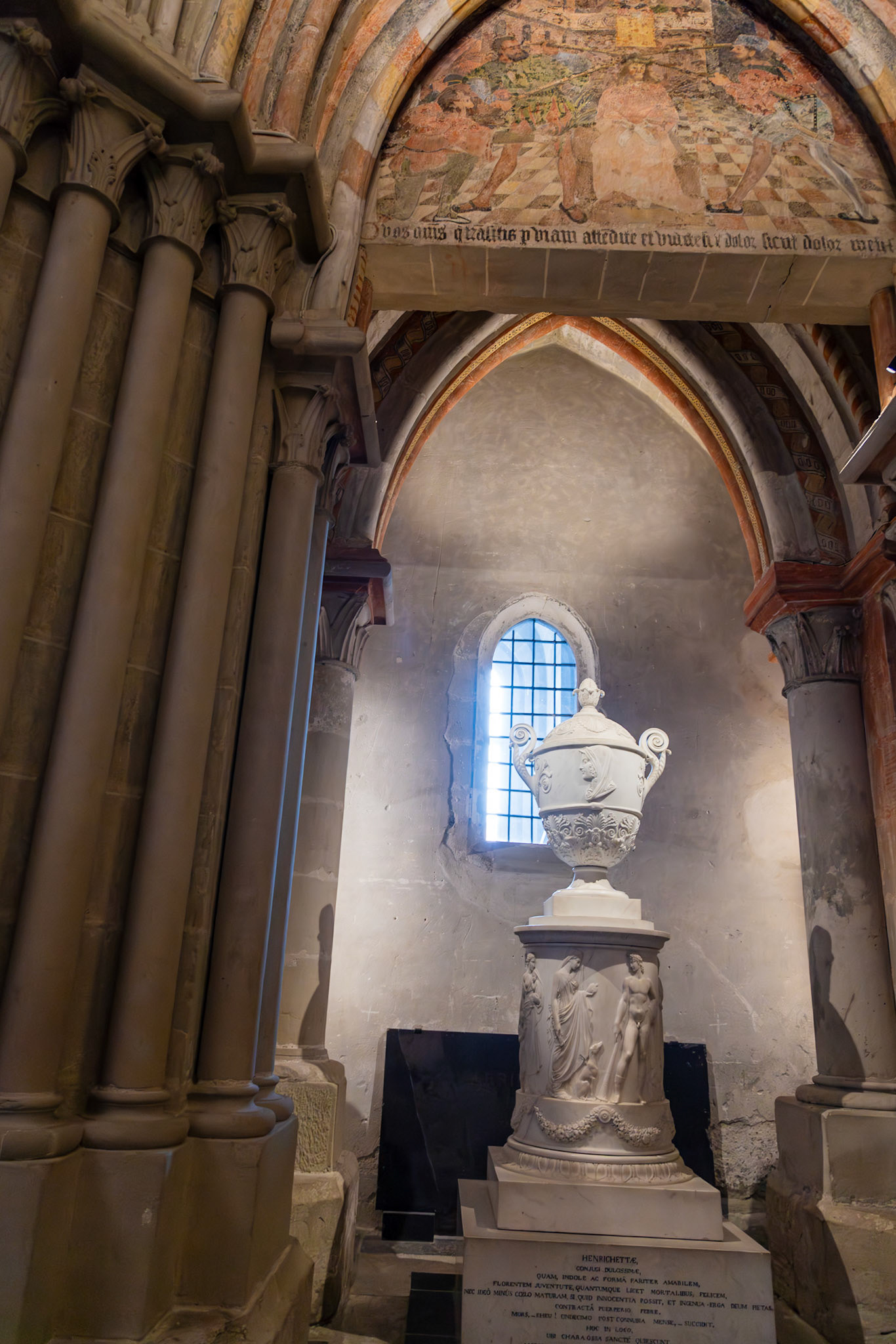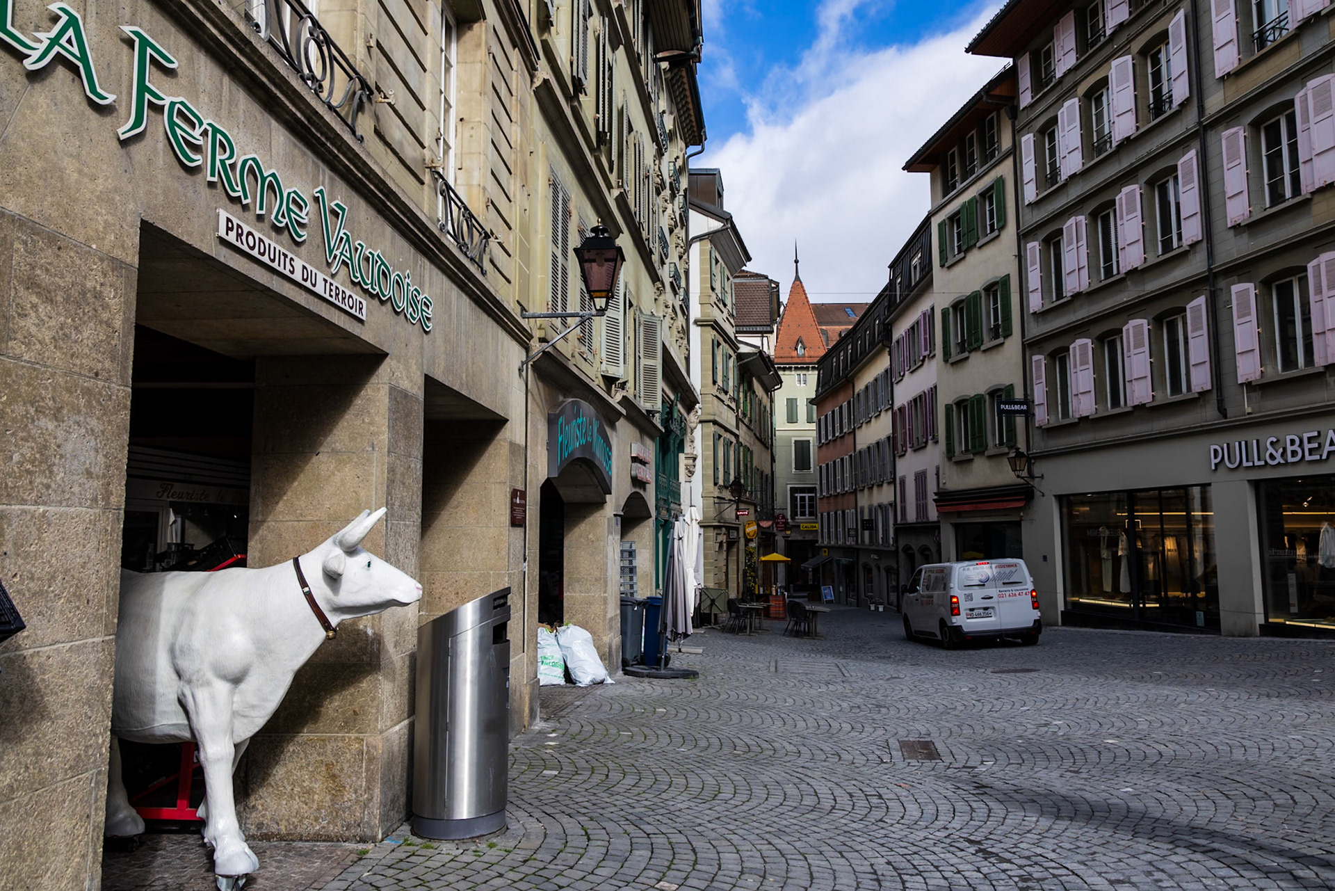 The statue atop the fountain is a symbolic portrayal of Lady Justice:Blindfolded, for impartialityHolding a sword in her right hand, symbolizing authorityHolding a balance scale in her left, symbolizing fairnessWith one knee exposed, symbolizing mercy.. Figures representing the Pope, Emperor, Grand Turk, and a magistrate are tucked under her robes, signifying their subjugation to justice.
